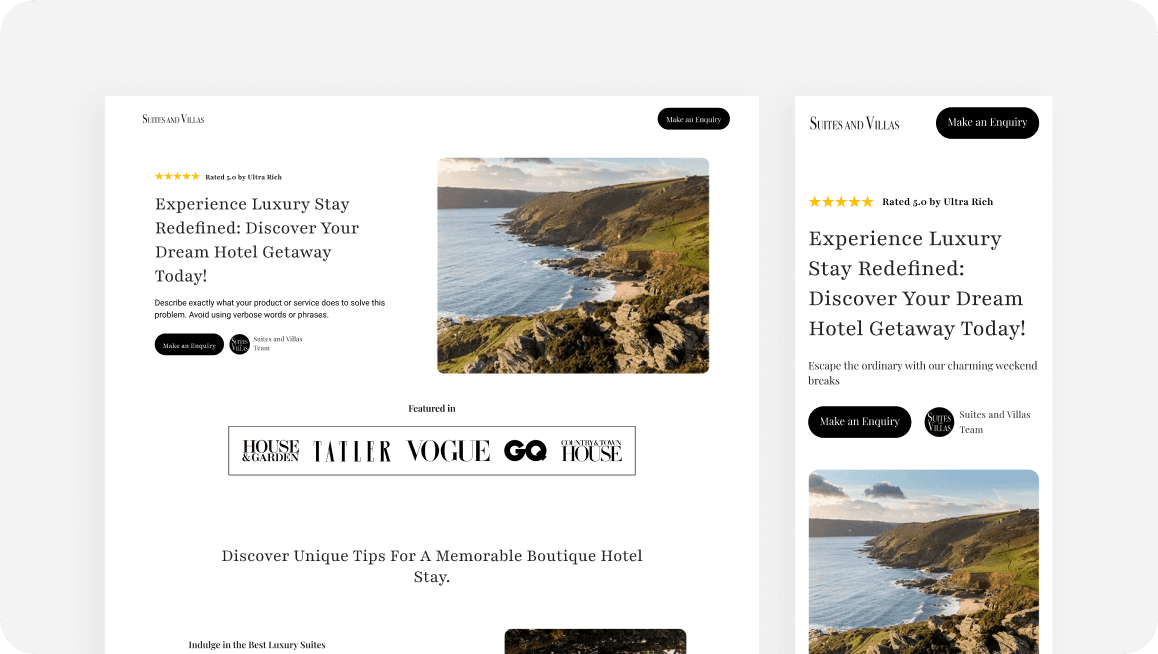 Suites and Villas is a ultra-luxury travel agency that provides access to exclusive, off-market suites and villas worldwide, along with VIP perks and highly personalized service.